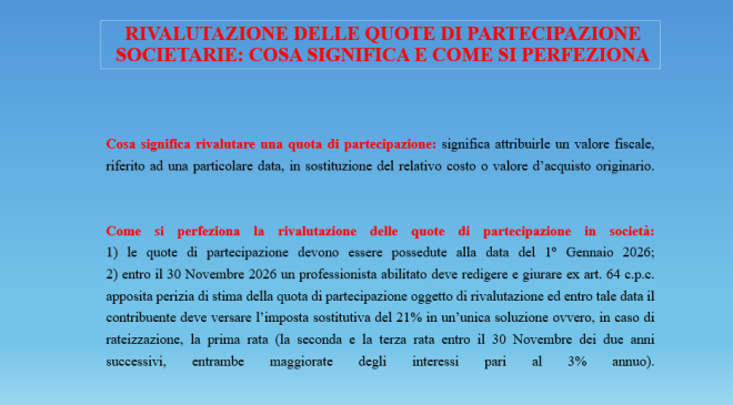Andando per altri lidi, è ancora prevista la possibilità di rivalutare le quote societarie?